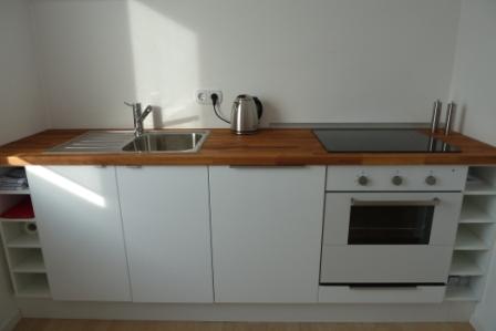 Die Küche ist ausgestattet mit Kühlschrank, Spülmaschine, Herd und Cerankochfeld, Wasserkocher, Nespressomaschine, Toaster, Koch- und Tafelgeschirr für sechs Personen.